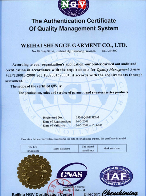 Copyright 2008 Weihai Single Garment Co.,Ltd